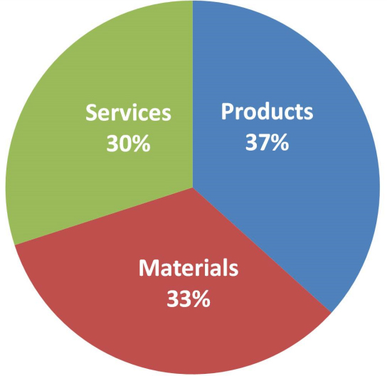 A breakdown of the market according to printer sales, services, and material sales for 2014.